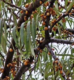 L'argousier (Hippophae rhamnoides, Elaeagnus rhamnoides, griset, épine luisante, saule épineux, faux nerprun, baie aux faisans, bourdaine marine, ananas de Sibérie) est un arbuste épineux à feuillage caduc de la famille des Eleagnaceae (comme l'