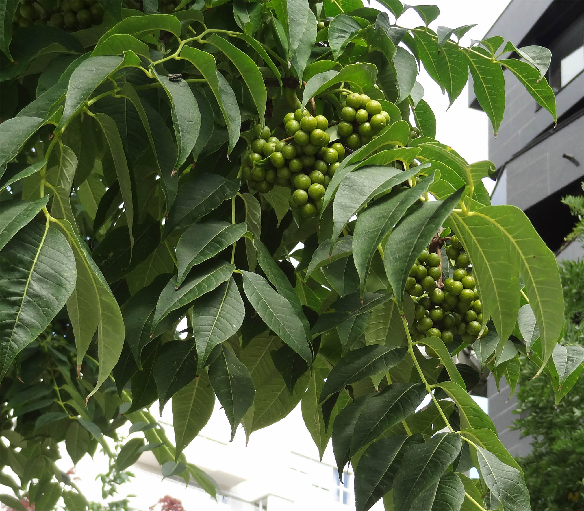 - Et puis, on peut observer, dans le parc Kellermann, une autre curiosité, un xanthoceras (Xanthoceras sorbifolium), un arbre qui se couvre au printemps de grappes de fleurs blanches étoilées, qui se transforment en automne en curieux fruits qui s'ouvrent en trois parties à maturité pour libérer de grosses graines noires luisantes (comestibles).
