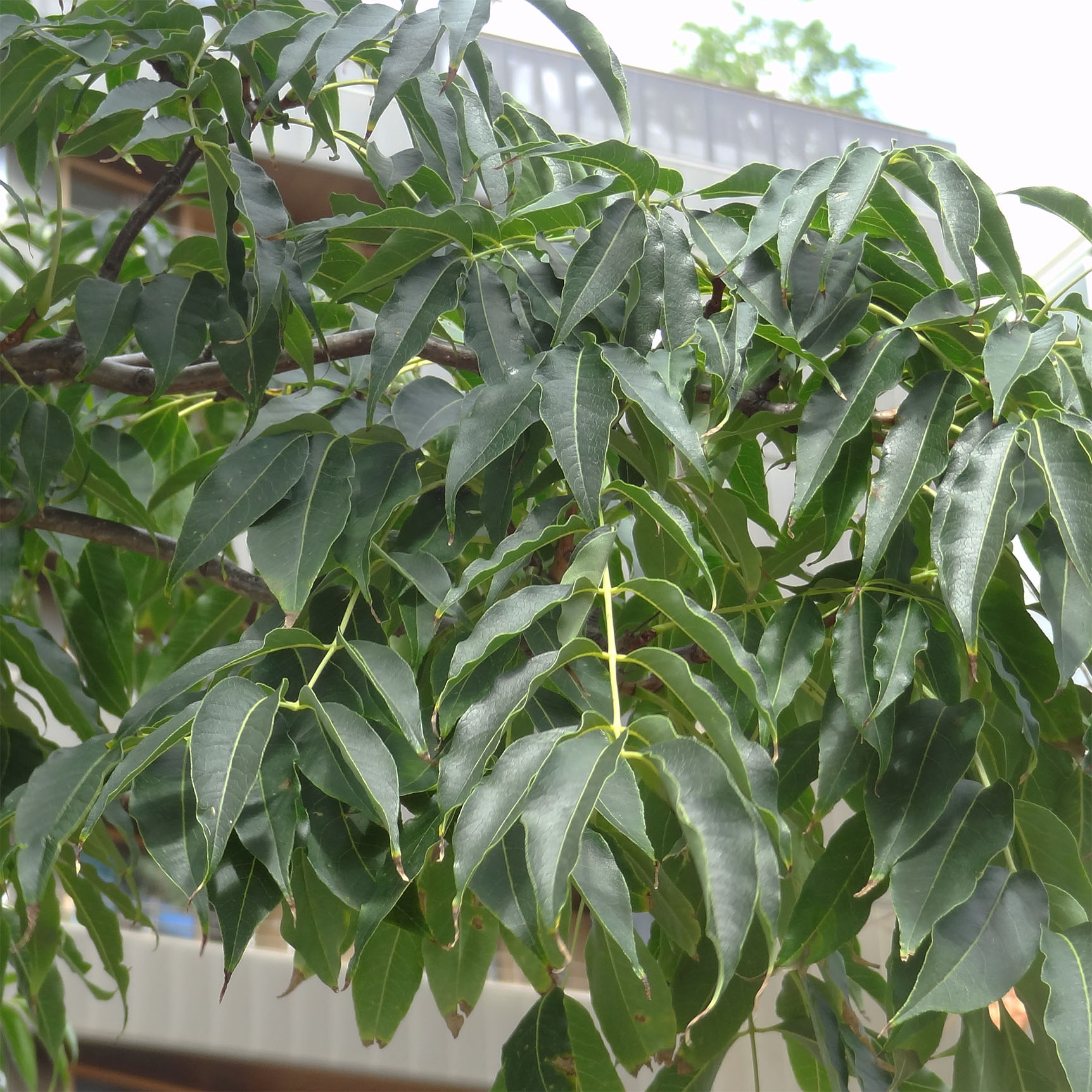 - Et une quinzaine de chênes à feuilles de saule (Quercus phellos, chêne saule), jardin des Grands Moulins et parvis Alan Turing. Des chênes très atypiques avec leurs feuilles longues et étroites.
