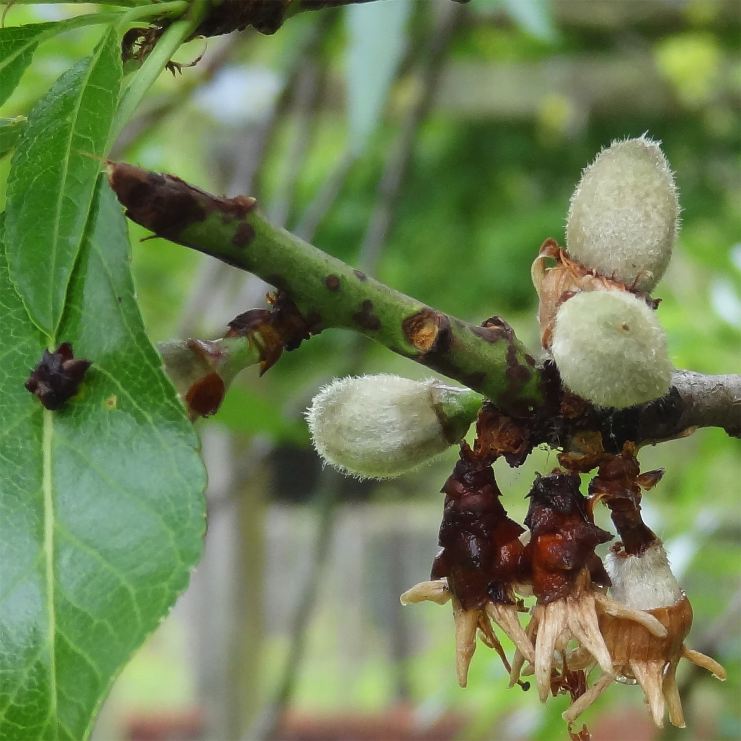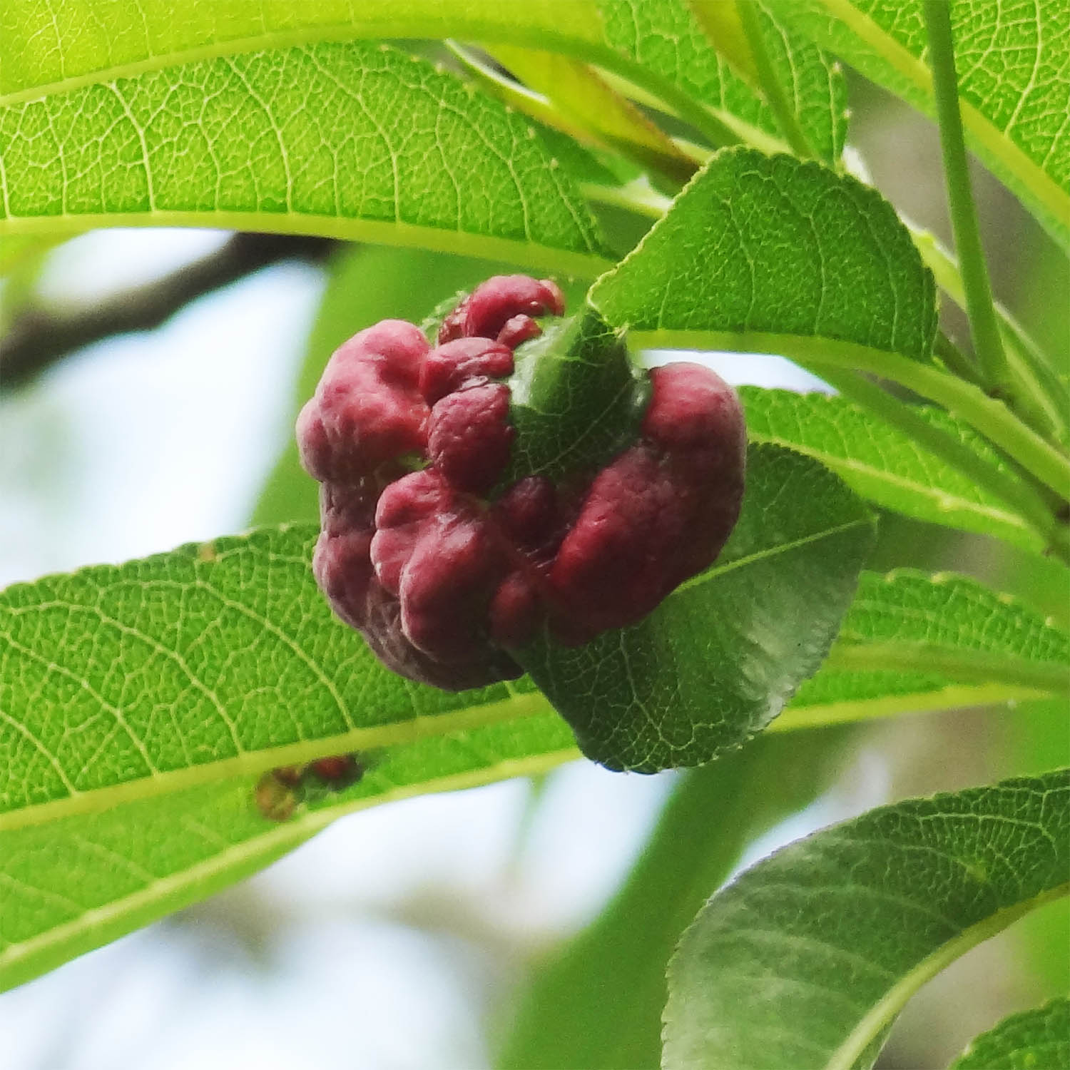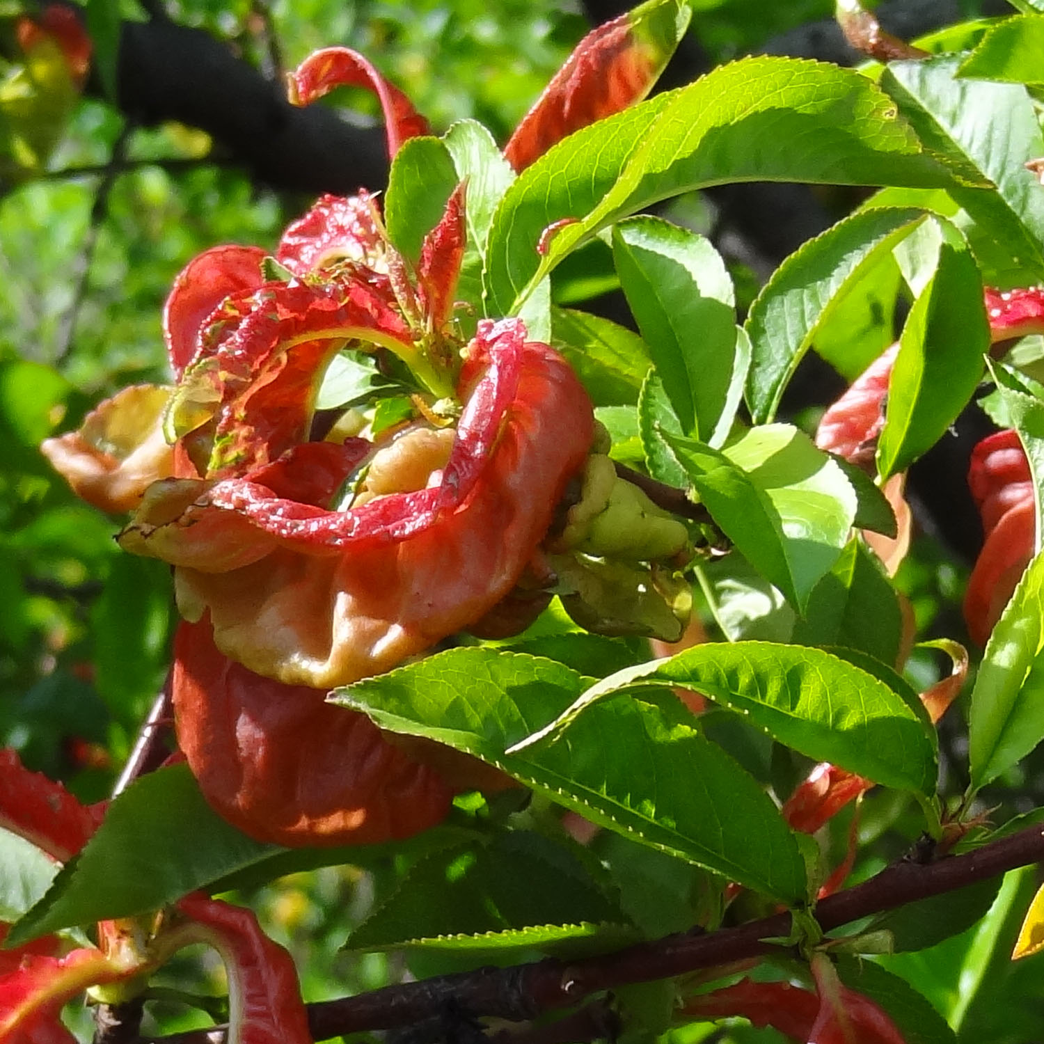 Elles sont souvent déformées et colorées par une maladie, la cloque du pêcher, causée par les attaques d'un champignon