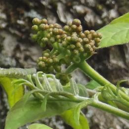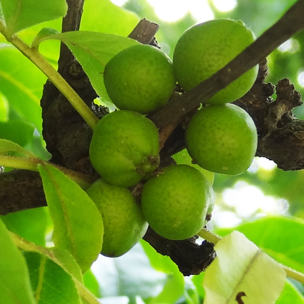 Les fleurs femelles se transforment en petits fruits sphériques d'environ un centimètre de diamètre, d'abord verts