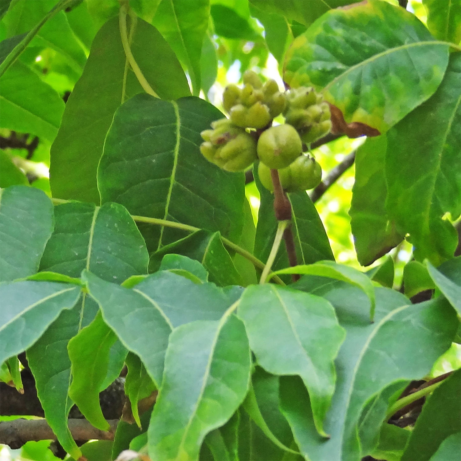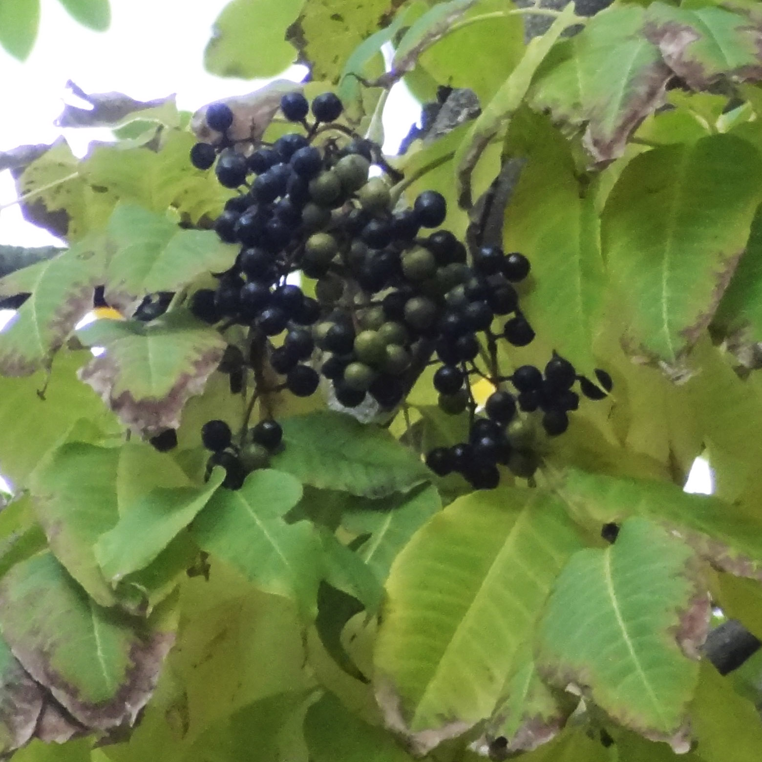 Les grappes pendantes de fruits peuvent rester sur l'arbre jusqu'en décembre.
