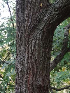L'écorce du tronc, brune ou gris foncé, est d'abord lisse, puis devient rugueuse et fissurée avec l'âge