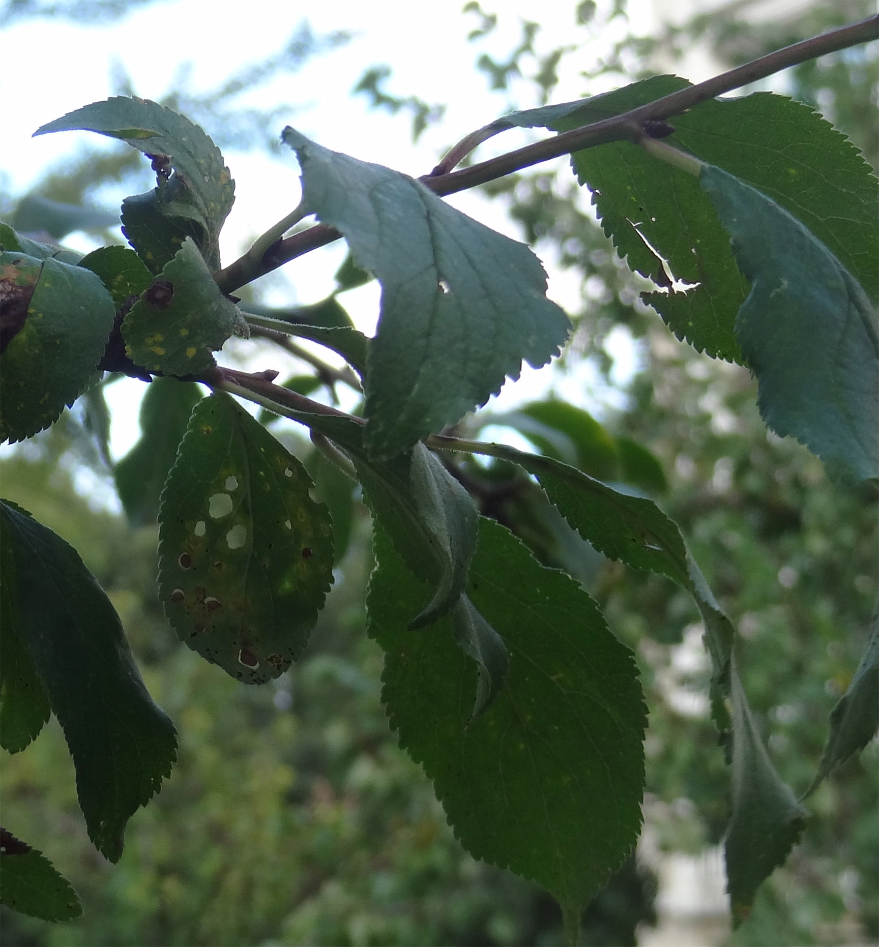 Ses feuilles, disposées de manière alterne sur des rameaux rarement épineux, sont ovales, dentées, terminées en pointe, souvent un peu duveteuses en dessous