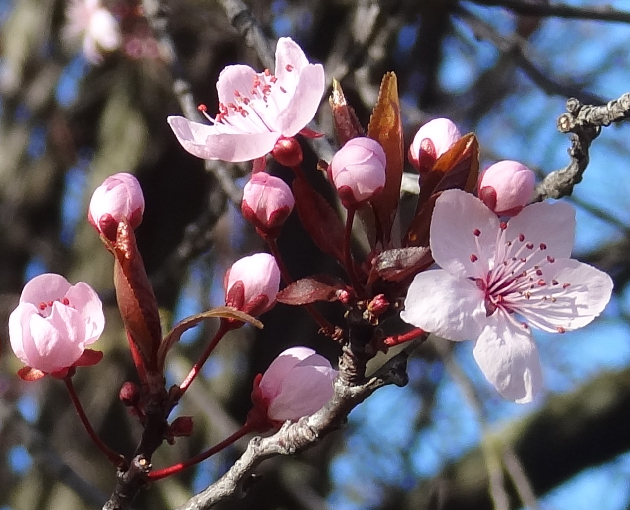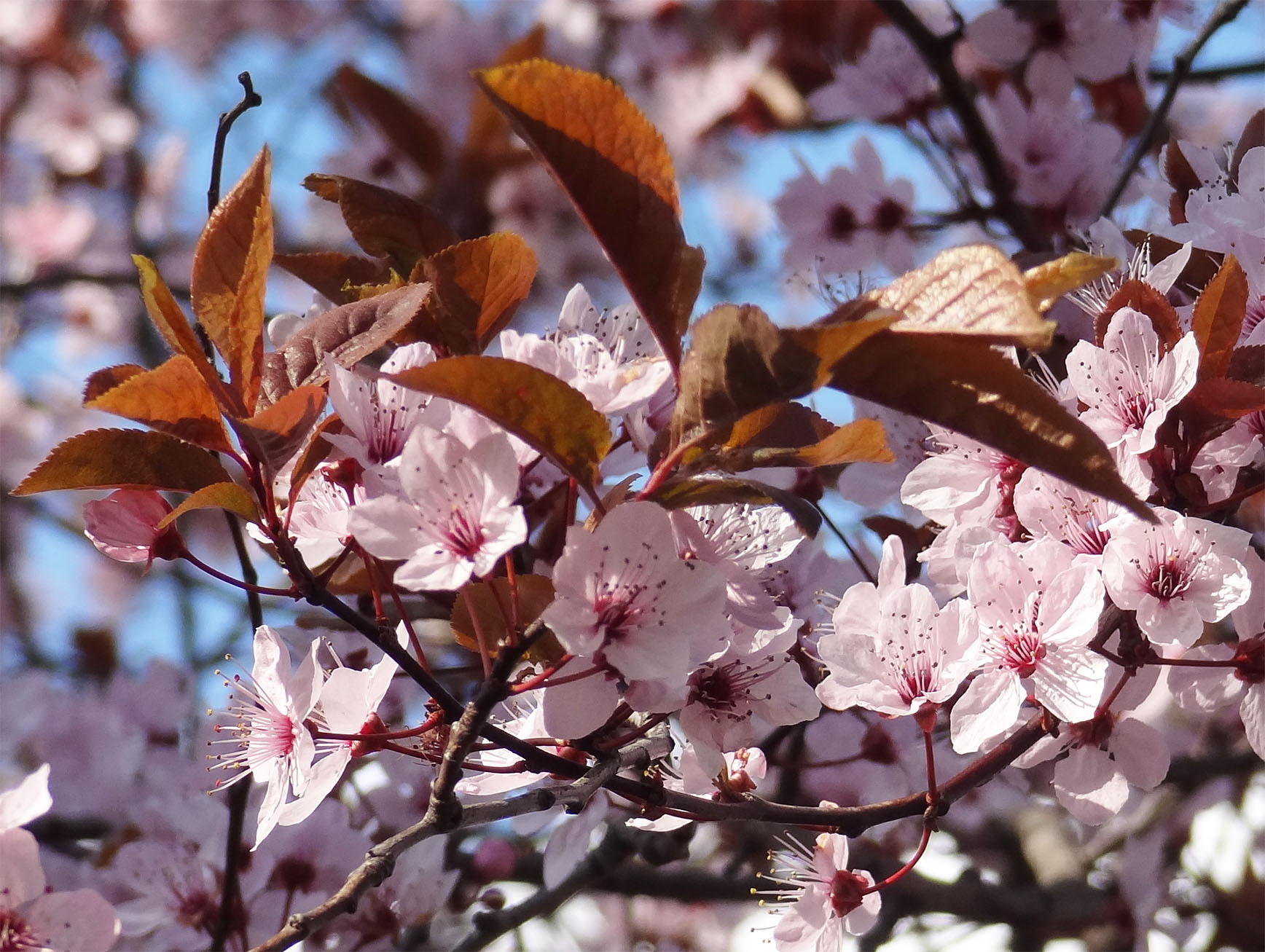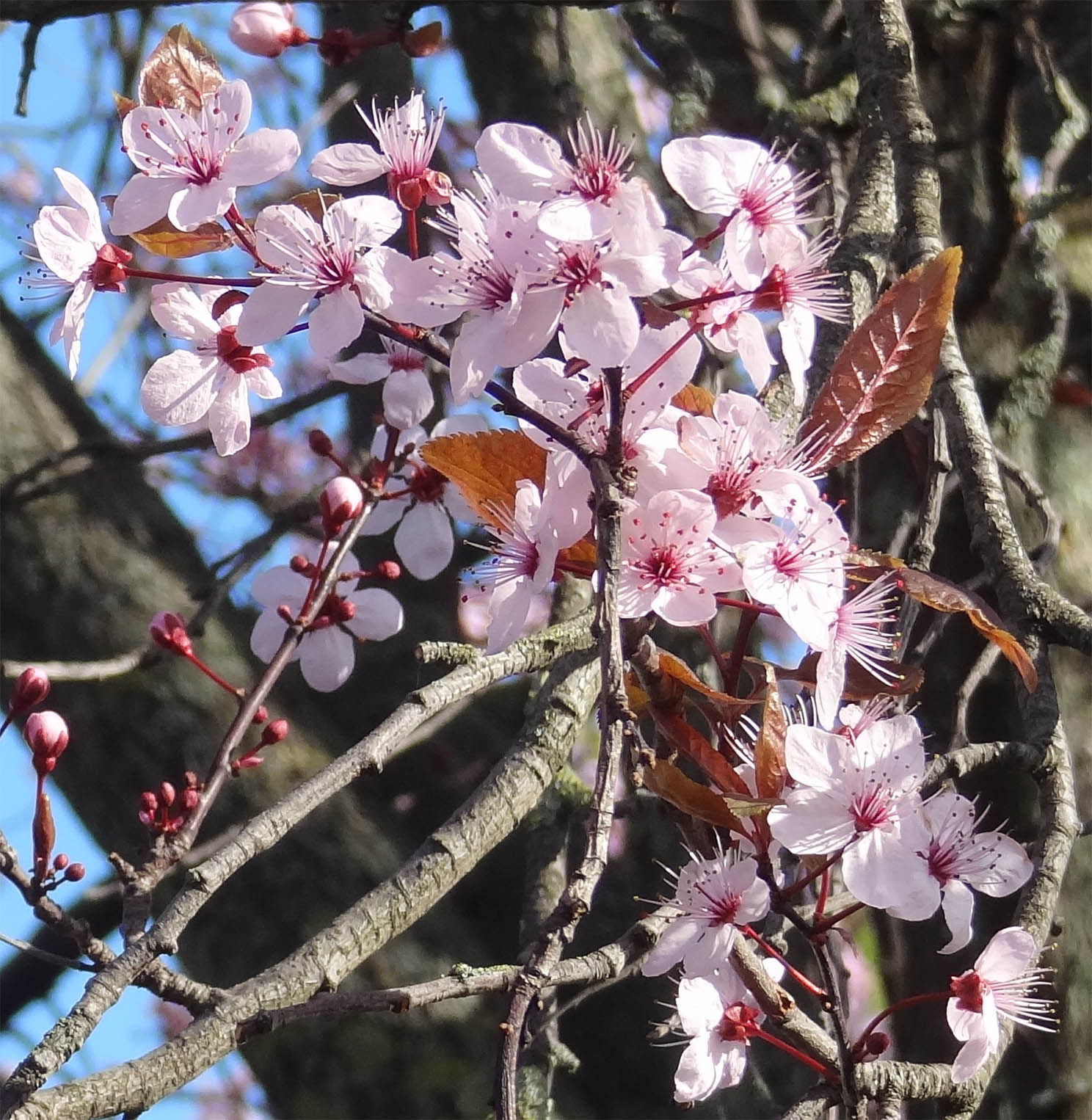 Celles de Prunus cerasifera 'Pissardii' sont pourpres