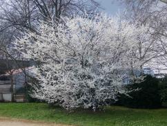 Ses fleurs blanches apparaissent en même temps que les feuilles