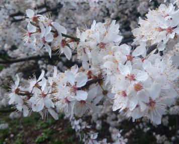 • Prunus domestica subsp. syriaca est la famille des mirabelliers qui produisent les mirabelles, petites prunes rondes, teintées de jaune, orange ou rouge.