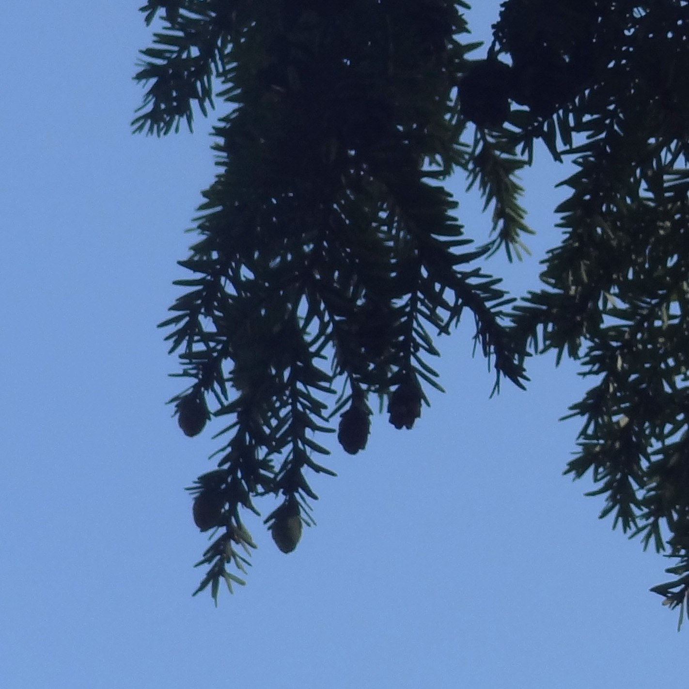A maturité, les cônes sont brun clair, pendants et mesurent 2 à 3 centimètres de long.