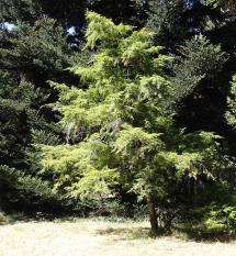 En forêt, il perd ses branches basses et conserve une cime pyramidale étroite.
